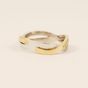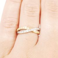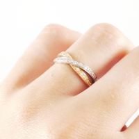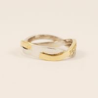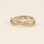 Bague croisée deux ors 750 mil. sertie de deux lignes de diamants 8/8. (Largeur : 0,5 cm environ) (TDD : 51). 3,7 g. brut.