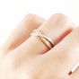Bague croisée deux ors 750 mil. sertie de deux lig