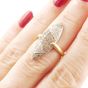 Bague marquise deux ors 750 mil. à décor géométrique pavé de diamants et de diamants bruns brillantés. (Largeur : 2,5 cm environ) (TDD : 57). 4,5 g. brut.
