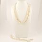Collier de 5 rangs de perles de culture. Fermoir en or 750 mil. parsemé de petites billes en or 750 mil. (Longueur : 47 cm environ). Formant parure : bracelet de 5 rangs de perles de culture (à renfiler). Fermoir en or 750 mil. et parsemé de billes d’or 750 mil. (Longueur : 20 cm environ). (Avec perles et billes d’or supplémentaires) [Dispensés : Article 524 bis du CGI alinéa c]. Poids total : 57,8 g. brut.