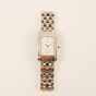 LONGINES, « Dolce vita » bracelet-montre de dame en acier, boîtier rectangulaire (Dim : 20 x 30 mm environ), cadran crème à index épis et petite seconde, tour de bras acier articulé (Long : 17 cm environ) mouvement à quartz. Signée, numérotée. Sans écrin. Avec sa carte de garantie.