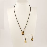 MATY. Collier en perles imitations noires, fermoir en or 750 Mil. centré d’un pendentif en or 750 mil. (Longueur : 41 cm environ). Une paire de boucles d’oreilles en or 750 mil. orné de perles imitations (Longueur : 3 m environ). 10,2 g. brut.