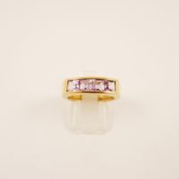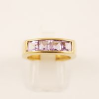Bague en or 750 mil ornée de 4 améthystes calibrées (TDD : 54). 6,4 g brut.
