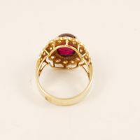 Bague fleur en or 585 mil ornée de pierres imitation (égrisures) (TDD : 55). 7 g brut.
