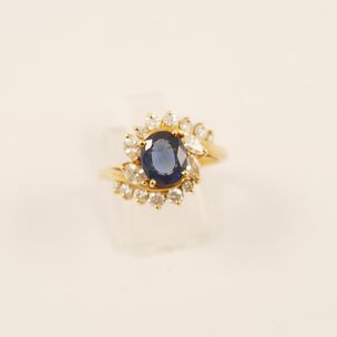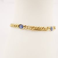 Bracelet en or 750 mil à mailles anglaise, intercalées de 4 galets de saphir (Accident, manques, manque chaîne de sécurité) (Long : 18 cm environ). 6,5 g brut.