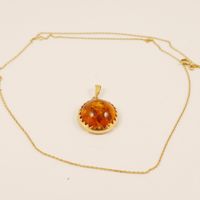 Collier en or 750 mil maillons forçat (Long : 45 cm), Pendentif en or 750 mil orné d'un morceau d'ambre poli (Diam : 1,9 cm). 4,3 g brut.