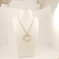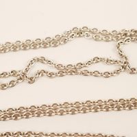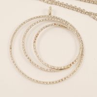 Pendentif en or gris 750 mil composé de 3 cercles diamantés (Diam : 4,5 cm environ), collier en or gris 750 mil à maillons ovale  (Long : 80 cm). 18,2 g brut.