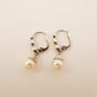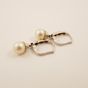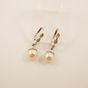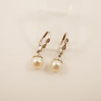 Paire de dormeuses en or gris 750 mil. chacune serties de 3 diamants taille brillant et retenant en pampille une perle de culture (hauteur : 2,5 cm environ) (diamètre perles : 7 mm environ). 3,3 g. brut