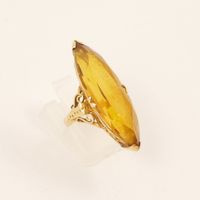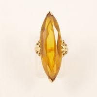 Bague en or 750 mil ornée d'une pierre imitation navette (TDD : 49,5). 7,2 g brut.
