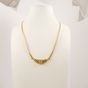 Collier lanière en or 750 mil à mailles anglaise centré d'un motif orné d'un diamant et de saphirs calibrés (Long : 43 cm). 14,2 g brut.