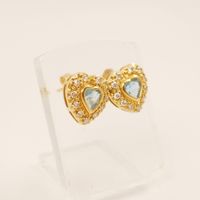 Paire de boucles d'oreilles "coeur" en or 750 mil centrées d'une topaze entourée de diaamnts (Dim : 1 x 1,1 cm environ). 2,8 g brut.