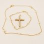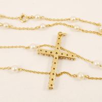 Tour de cou et bracelet en or 750 mil ponctués de perles de culture (Long : 38 cm; 17 cm), Croix en or 750 mil ornée de perles de culture (Dim : 3,1 x 2,2 cm environ). 8,6 g brut.