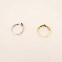 Bague en or gris 585 mil. (pierre imitation, diamants brillantés) (TDD : 54,5), bague 2 ors 585 mil. (diamant brillanté) (TDD : 56,5). 3,4 g. brut.