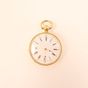 Montre de col en or 750 mil., cadran blanc à chiffres romains, le dos à décor floral ciselé et guilloché, mouvement mécanique (diamètre : 32 mm environ). 25,9 g. brut ; chaîne de montre en or 750 mil. ponctuée de perles de culture baroques (longueur : 78 cm) (accidents et manques). 21,8 g. brut. 47,6 g. brut total.