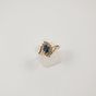 Bague marquise en or 750 mil. centrée d’un saphir ovale dans un entourage de diamants brillantés en serti griffe. (TDD : 57). 3,3 g. brut.