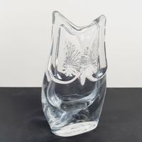 DAUM France "Hibou" Epreuve de tirage industriel en cristal moulé-pressé blanc transparent. Signé à la pointe à la base. Dimensions : 23,5 x 15,5 x 6,5 cm.