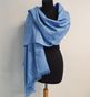 HERMES Etole « New Libris » en cachemire et soie tissée en jacquard bleu ciel à bords frangés, à motif du dessin « Confettis d’Ex-Libris ». Modèle dessiné par Sandy Queudrus. Composition 85% cachemire, 15% soie. Fabriqué en Italie. Dimensions : 75 x 210 cm. (Tampon S de soldes) (Quelques petits fils tirés)