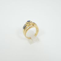 Bague chevalière en or 750 mil. centrée d'un saphi