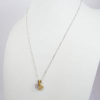 Collier en or gris 750 mil. à fine maille gourmette et Pendentif Ancre deux ors 750 mil. séparable en deux, dont une partie ornée d'un diamant brillanté de 0,03 carat environ. (Longueur collier : 42,5 cm ; Haut. pend. : 1,3 cm). 4,2 g. brut