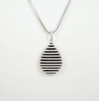 Collier MIST en or gris 750 mil. à maille serpent retenant un pendentif poire, la monture ajourée ornée de lignes de diamants brillantés enserrant un onyx. Signé sur le pendentif. (Longueur collier : 41,5 cm ; Haut. pend. : 3,5 cm). 21,7 g. brut