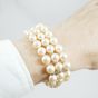 Bracelet de 3 rangs de perles de culture (diamètre : 7,5 à 7,7 mm environ), avec fermoir en or gris 750 mil. et intercalaires en métal (longueur : 19 cm, largeur : 2,4 cm) (prévoir un renfilage). 44,6 g. brut.