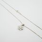 Pendentif "fleur" en or gris 750 mil. serti de diamants brillantés (le central : 0,15 ct environ) (dimensions : 1,4 x 1 cm), sur collier en or rhodié 750 mil. à maille serpent (longueur : 49 cm) (déformations). 4 g. brut.