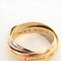 CARTIER, modèle « Trinity ». Bague trois anneaux entrelacés en or 750 millièmes de trois tons. (Usures) Signée et numérotée. Tour de doigt : 55 Poids brut : 8,4 g
