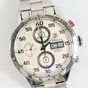 TAG HEUER, Carrera. Montre d’homme ronde chronographe. Référence CV2A11. Boîtier en acier signé et numéroté RWY8583. Cadran crème à trois sous-compteurs, guichet jour et date à 3h, aiguilles luminescentes. Mouvement mécanique à remontage automatique signé. Calibre 16 base ETA. Diamètre : 43 mm environ. Bracelet en acier avec boucle déployante signée. Sans écrin ni papiers.