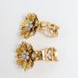 VAN CLEEF & ARPELS Paire de boucles d’oreilles en or jaune 750 millièmes et platine 850 millièmes, chacune à décor de fils d’or figurant une fleur partiellement ornée de diamants ronds de taille brillant. Système à pince. Signé et numéroté sur chaque élément. Hauteur : 2 cm Poids brut : 17,9 g