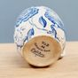 Lot en faïence fine européenne, XXe siècle comprenant : - RORSTAND (Suède), Vase modèle "Druva" à côtes pincées de section rectangulaire à décor monochrome bleu de pampres de vigne et de fleurs. Signé sous la base. H. 22 cm. TBE. - VILLEROY & BOCH (France et Sarre en Allemagne), Partie de service à café, modèle "Colibri" à décor monochrome bleu de fleurs indiennes et oiseaux exotiques comprenant : 1 sucrier couvert (H. 10,5 cm), 2 pots à lait (H. 8 cm), 5 tasses à café (H. 5,3 cm), 7 soucoupes à tasses de thé (D. 14,2 cm) 1 soucoupe à tasse de café (D. 13 cm) et 3 assiettes à dessert (D. 19,5 cm). Marqués sous la base. TBE.