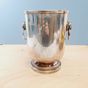 Seau à champagne moderne sur piedouche en métal argenté, modèle à frise de godrons et anneaux latéraux retenus par des mufles de lions. Poinçon de maître AG. H. 24,7 cm. Rayures d'usage.