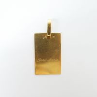 Lot en or 750 mil. composé d'un collier à maille gourmette (longueur : 41,5 cm environ) et d'un pendentif plaque chiffré (dimensions : 33 x 15,9 mm environ). 14,5 g.