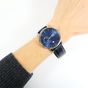 RADO "DiaMaster Power Reserve". Montre-bracelet en céramique grise et titane, boîtier rond, cadran bleu nuit rayonnant avec indicateur de réserve de marche, index bâton appliqués, guichet dateur à 6H, mouvement automatique apparent sous un fond de boîte transparent, bracelet en cuir marine, boucle déployante signée et siglée en acier, signée et numérotée, réf. R14138206 (diamètre : 43 mm environ) (légères rayures sur le verre, bracelet usé).