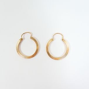 80 / 120 €Paire de créoles cannelées en or 750 mil. Travail français. (Diamètre : 2,2 cm). (Petites déformations). 1,6 g. brut