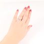 Bague en or gris 750 mil. à chaton circulaire centrée d'un diamant brillanté de 0,15 carat environ dans un entourage de diamants 8/8. (TDD : 55). (Trace de mise à taille, anneau de rétrécissement). 3,3 g. brut