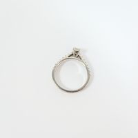 Bague solitaire en or gris 750 mil. centrée d'un diamant coussin de 0,15 carat environ épaulé de diamants brillantés plus petits. (TDD : 47). 2,2 g. brut