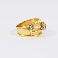 Bague jonc en or 750 mil. centrée d'une pierre rou