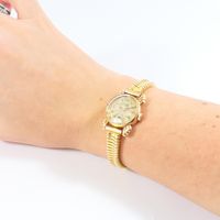 HERODIA, Bracelet-montre en or 750 mil. Boitier rond, cadran beige à chiffres arabes, chemin de fer pour les minutes, petite seconde à 6 H, mouvement mécaniques à remontage manuel, bracelet à maille spirotube fermoir échelle à rabat. (Dimensions : 16,5 cm environ x 2,4 cm environ). (Oxydations et révisions à prévoir). 20,6 g. brut.