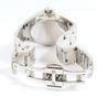 MAUBOUSSIN, "L'heure de la paix immédiate", bracelet montre de dame en acier, boitier rond (diam : 33 mm environ), cadran argenté à chiffres arabes et serti de diamants, guichet dateur à 4 h, mouvement à quartz, sur bracelet à maillons articulés à boucle déployante. Signé et numéroté.