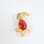 Broche "lapin" 2 ors 750 mil. , le corps serti d'un cabochon de cornaline, l'œil d'un rubis (dimensions : 4 x 2,5 cm environ). 6,9 g. brut.