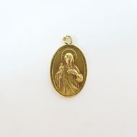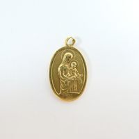 A. AUGIS. Médaille religieuse en or 750 mil. figurant La Vierge Marie d'un côté et Jésus de l'autre, signée (hauteur : 2,1 cm environ) (anneau cassé, manque bélière). 2,3 g.