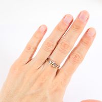 Bague 3 ors 375 mil. sertie de 3 diamants taille brillant (TDD : 58) (largeur : 5 mm environ) (une griffe à revoir). 1,7 g. brut