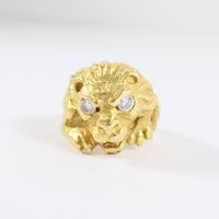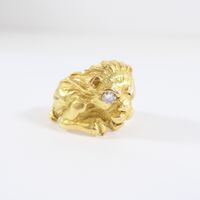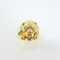 Bague lion en or 750 mil. ornée de 2 diamants tail