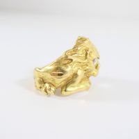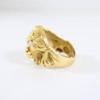 Bague lion en or 750 mil. ornée de 2 diamants taille brillant de 0,20 carat environ chacun (TDD : 62) (largeur : 21,4 mm environ) (petit éclat). 15,4 g. brut
