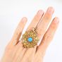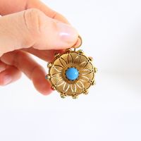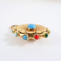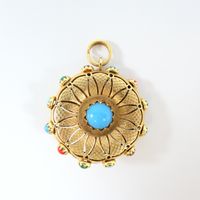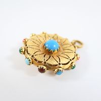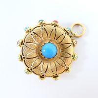 UNOAERRE. Pendentif rosace en or 750 mil. à décor guilloché et ajouré, serti de cabochons de pierres imitation multicolores (diamètre : 3,5 cm environ) (légères égrisures). 12,3 g. brut