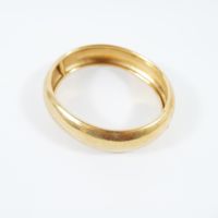 Bracelet jonc ouvrant en or 750 mil. (longueur : 17,5 cm). Travail français. (Chocs). 28,2 g.
