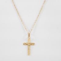 Lot en or 750 mil. : 2 croix guillochée avec le Christ (dimensions : 3,3 x 1,7 cm, et 3 x 1,5 cm) (légère déformation, usure); et collier corde (longueur : 46 cm). 3,4 g.