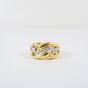 ALAIN ROURE. Bague bandeau ajourée 2 ors 750 mil. à motif d'entrelacs sertis de diamants brillantés. Signée. Travail français. (TDD : 53). 7,9 g. brut