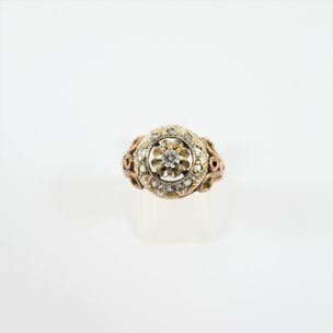 Bracelet composé de deux câbles d'acier torsadé alterné de 3 motifs sertis de vis. (Tour de poignet : 18 cm).