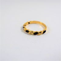 Anneau en or 375 mil centré de motifs navette ornés alternativement d'un diamant 8/8 et d'une pierre bleue (TDD : 62). 2 g brut.